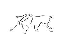 Een oneline wereldkaart met de werelddelen Europa, Afrika, Azië, Amerika en Australië.