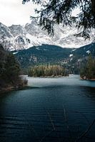 Het is een zachte winterdag aan de Eibsee. Je kunt het rotsmassief zien dat de Zugspitze ondersteunt, zachtjes bepoederd met sneeuw, met het mysterieuze Sasseninsel aan zijn voeten.