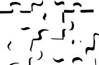 De foto is zo bewerkt dat er geen echte details meer te zien zijn van de puzzelstukjes, alleen de hoofdlijnen gevormd door de schaduwen. Door de bewerking van deze foto doet het werk abstract grafisch aan.
