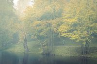 Het Noorderplanstoen in de ochtend. Deze vrouw is hier een lekkere wandeling aan het maken in dit prachtige mistige plantsoen. Ze wandelt hier heerlijk tussen de bomen en valt bijna niet op.