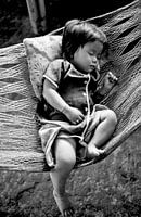 Deze foto is genomen in 1999 in het zuiden van Vietnam in de Mekongdelta tijdens een fotoreis van een maand met mijn voormalige fotopartner. Het fotomotief wordt gekenmerkt door een vredige, rustgevende sfeer. Het kleine Vietnamese meisje slaapt zonder angst in haar betoverende hangmat.