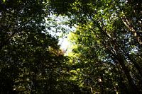 De natuur ontdekken in een bosrijk gebied in Geeste, Emsland, Nedersaksen, Duitsland, gefotografeerd op een warme zomerdag in augustus in de buurt van Geeste.