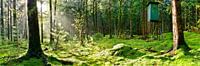 Met mos bedekte open plek in een bos met verhoogde huid...