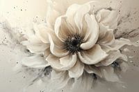 "Ontluiken in Stilte" toont een delicate bloem in zachte beige en crèmetinten, weergegeven met een abstracte flair die zowel kracht als verfijning uitstraalt. De bloemblaadjes lijken zich moeiteloos uit te strekken, terwijl subtiele verfspatten en schaduwrijke details een gevoel van beweging toevoegen. Dit kunstwerk vangt de harmonie…
