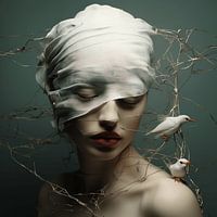De maker geeft vorm aan een krachtig verhaal van onderdanigheid en de drang naar vrijheid door de afbeelding van een geblinddoekte en geketende vrouw. Haar gesloten ogen stralen de wens uit om te ontsnappen aan de realiteit, om zichzelf te bevrijden van emotionele ketens. Een uitnodiging voor introspectie over de complexiteit van vrijheid en de persoonlijke reis naar zelfontdekking.