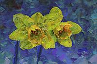 Spring Awakening in Yellow and Blue werd gefotografeerd door Photoart-Naegele 2025 en verfijnd als een olieverfschilderij met de hulp van kunstmatige intelligentie.