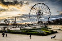 Mensen zoeken ontspanning in hartje winter in Parijs met een reuzenrad en de Eiffeltoren op de achtergrond