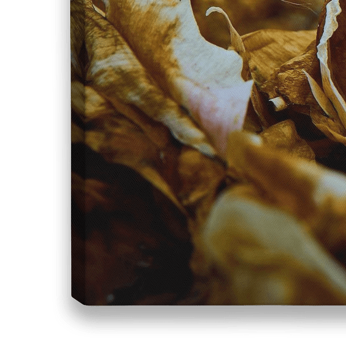 Het zijn de overblijfselen van een pioenroos. De pioenrozen zijn een week in een zinken bak met water gelegd om dit resultaat te krijgen. De bloemen en het water vormen een zwarte substantie met delen van de bloem die er uitsteken. Het hart van de bloem gaat het snelst ten onder en zuigt de rest van de bloem mee de vergetelheid in. De bloembladeren van een pioenroos zijn nagenoeg onherkenbaar geworden en is de natuur verworden tot een abstractie.
