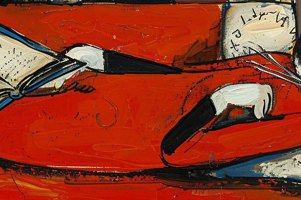 Dit unieke kunstwerk vangt de speelse en eigentijdse sfeer van een ontspannen kat, rustig liggend op een levendig rode bank terwijl het door een boek bladert. De eenvoudige, gedurfde lijnen en de intense kleuren brengen een vrolijke en dynamische energie over. Het ontwerp is perfect voor elke ruimte die een vleugje creativiteit en vrolijkheid kan gebruiken, of het nu in een woonkamer, een kantoor of zelfs een kinderkamer is. De combinatie van expressieve kunststijlen zoals Popart en Expressionisme maakt dit werk een opvallend stuk dat de aandacht trekt en tegelijkertijd een glimlach op het gezicht van de kijker tovert.