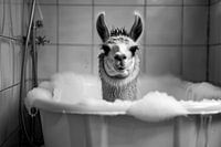 Koop de foto Ontspannen lama in de badkamer - een uniek WC-kunstwerk van Poster Art Shop als print op canvas, aluminium dibond, (ingelijste) fotoprint, behang en ArtFrame. Voor jou op maat geprint in Fine-Art kwaliteit.