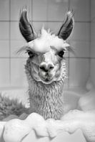 Deze ongewone badkamermuurschildering toont een ontspannen lama in zijn bad en voegt een verfrissend tintje toe aan je toilet. De zwart-wit fotografie legt de sereniteit van de lama vast en benadrukt de details van de scène, waardoor het een charmante en unieke toevoeging aan je badkamer is. Ideaal om je toilet of badkamer op te fleuren en een herinnering dat dieren ook kunnen genieten van momenten van rust en ontspanning. Deze moderne serie badkamerafbeeldingen biedt een creatieve decoratie die niet alleen een glimlach op je gezicht tovert, maar ook je badkamer in stijl verfraait. Breng een sfeer van sereniteit en elegantie in je badkamer met dit unieke kunstwerk en laat je inspireren door zijn charisma.