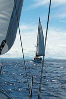 De andere zeilboot, waarmee we samen op weg zijn, ligt steeds een klein stukje op ons voor. En zelfs ons meest fanatieke bemanningslid heeft geen behoefte om te proberen aan onze buren voorbij te komen.