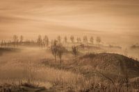Het ontwaken van een nieuw jaar. Nevel landschap in sephia