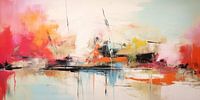 "Ontwakend Palet" vormt een deel van de "Let Spring Begin" serie, en brengt een vernieuwde kijk op de ontwaking van de lente. De kleuren van de dageraad reflecteren zich in een watervlak, met warme karmijn- en zachte perziktinten die samensmelten met helder hemelsblauw en rustige crème. Deze digitale kunst benadrukt de zachte overgangen tussen nacht en dag, winter en lente. Het is een symbool van hoop en nieuw begin, waarbij de abstracte vormen en lijnen een ruimte scheppen die rijk is aan mogelijkheden en frisse perspectieven.