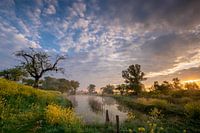 Waking morning' is gefotografeerd in een natuurgebied nabij Schalkwijk (Utrecht, Nederland), op dezelfde morgen als de foto 'In alle rust...'Een schitterende ochtend in een prachtig gebied. Deze foto is gemaakt, ongeveer een half uur na zonsopkomst. Hierdoor een heel andere sfeer dan de foto 'In alle rust...' Het geel van het raapzaad knalt eruit in dit landschap..