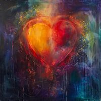 Dit betoverende schilderij straalt de kracht en diepte uit van onvoorwaardelijke liefde door middel van levendige rode tinten en een explosie van kleur. Op het doek gloeit een prachtig rood hart, als een symbool van passie en onvoorwaardelijke liefde. De schakeringen van rood worden versterkt door contrasterende kleuren die de complexiteit van liefde weerspiegelen, variërend van diep paars tot fel oranje.