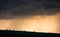 Schapen op de dijk (nabij Waarde, Zeeland) terwijl een onweersstorm voorbij raast.
