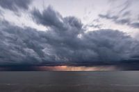tijdens een onweer slaan de bliksemschichten in het water van het IJsselmeer.