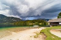 Het weer bij het meer van Bohinj in Slovenie doet zijn eigen ding, een bui in de middag komt erg vaak voor. Een onweersbui is dan ook geen uitzondering, zoals die hier dreigend aan kwam zetten vanaf de omliggende bergen.