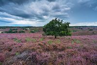 Prachtige luchten door een stevige onweersbui op de Posbank, Veluwe. Hier en daar nog een plukje bloeiende heide.
