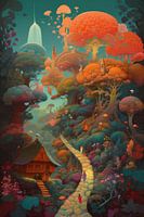 Koop dit landschapskunstwerk Onwerkelijke stad en natuur | Digitale Art van Digitale Schilderijen als print op canvas, aluminium dibond, (ingelijste) fotoprint, behang en ArtFrame. Voor jou op maat geprint in Fine-Art kwaliteit.