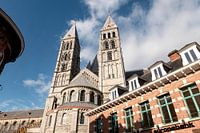 Tournai Belgium The Cathedral of Our Lady (Notre-Dame de Tournai, Onze-Lieve-Vrouw van Doornik), or Tournai Cathedral towers over the town. church, building, spires, Unesco, world Heritage, site,