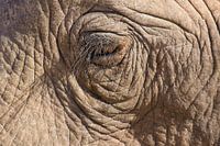 Koop de foto Oog van een Afrikaanse olifant. van Ron Poot als print op canvas, aluminium dibond, (ingelijste) fotoprint, behang en ArtFrame. Voor jou op maat geprint in Fine-Art kwaliteit.