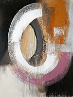 Details: abstract, oogvorm, zwart, wit, beige, oranje, cirkel, modern, kunst, textuur