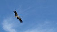Er is een tijd geweest dat je ze niet zo vaak zag maar nu zie je deze mooie vogel steeds vaker vliegen. De wit, zwart en oranje kleur van de ooievaar steekt mooi af tegen de stralende blauwe lucht.