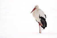 Koop de foto Ooievaar rustend in de sneeuw. van Marcel Pietersen als print op canvas, aluminium dibond, (ingelijste) fotoprint, behang en ArtFrame. Voor jou op maat geprint in Fine-Art kwaliteit.