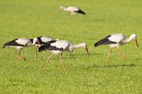 Ooievaars Ciconia ciconia in een pas gemaaid weiland in het oosten van Nederland in het najaar van 2016
