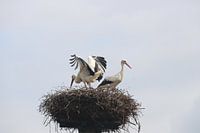 Ooievaars op het nest samen bouwen aan de toekomst.