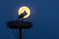 Koop dit vogel kunstwerk Ooievaarsnest met Supermaan van JPWFoto op canvas, aluminium dibond, (ingelijste) fotoprint, behang en ArtFrame, op maat geprint in Fine-Art kwaliteit.