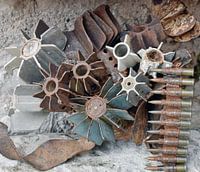 Souvenirs van oorlog in Mostar waar ze een kunstwerk van gemaakt hebben
