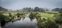 East Dart rivier in Postbridge op Dartmoor, Engeland, op een regenachtige dag.
