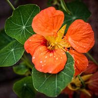 Close-up van een oranje Oost Indische Kers bloem in de tuin
