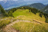 Een pad naar beneden om op de top te komen van een Oostenrijkse berg in de zomer.