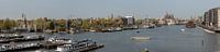 Amsterdam The Netherlands Elevated view of the city and Oosterdok seen from Nemo Sceince Museum roof. In the distance Montelbaanstoren, Church of Saint NicholasBasiliek van de Heilige Nicolaas