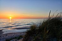 Zonsondergang aan de Oostzee op het strand van het schiereiland Fischland-Darss-Zingst
