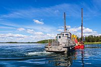 Oostzeekust met bouwschip voor het eiland Hasselö in Zweden.