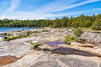Oostzeekust met rotsen en bomen op het eiland Sladö in Zweden.