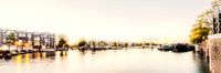 Een panoramafoto in duotoon van de Amstel in Amsterdam... de avond begint, de eerste huizen worden verlicht, het uitzicht op de Blauwe Brug .... Het was een prachtig moment.