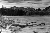 Op de Loisach tussen Farchant en Oberau met uitzicht op het Zugspitze-massief