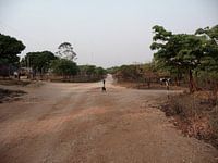 Een vrouw steekt over op een kruispunt in Makuti, Zimbabwe- Afrika.