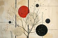 Dit abstracte kunstwerk maakt indruk met zijn op de natuur geïnspireerde elementen en harmonieuze kleurenschema in rood, zwart en beige. De filigraanlijnen, die doen denken aan takken, combineren perfect met de geometrische vormen en creëren een unieke visuele diepte. Ideaal voor creatieve ruimtes, kantoren en moderne woonkamers die een vleugje natuur en elegantie moeten uitstralen.