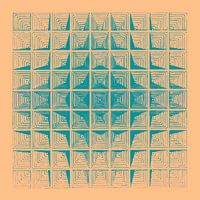 Een abstracte illustratie met geometrische vormen als een houtsnede met mooie details in trendy kleuren. Een kunstwerk, modern en trendy met een vleugje retro.