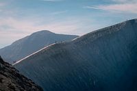 De foto is erg geschikt voor een kamer met koude kleuren. Het zal een gevoel ruimte creëren doordat het een landschap is.