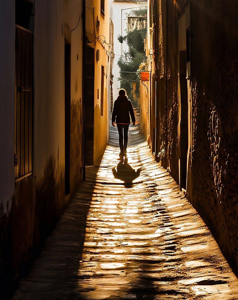 Op de weg in een smal steegje