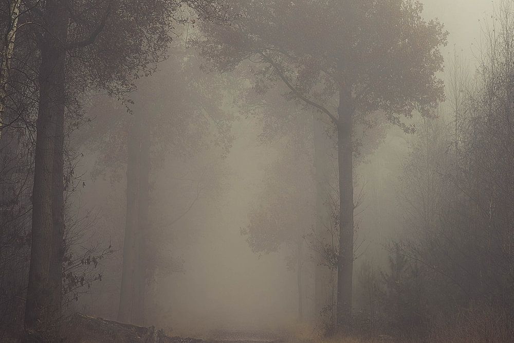 Op een mistige morgen , foto is genomen in het Mastbos bij Breda ,Noord Brabant