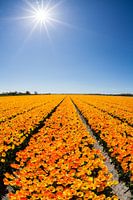 Een tulpenveld in bloei op een mooie lentedag. Typisch Hollands.